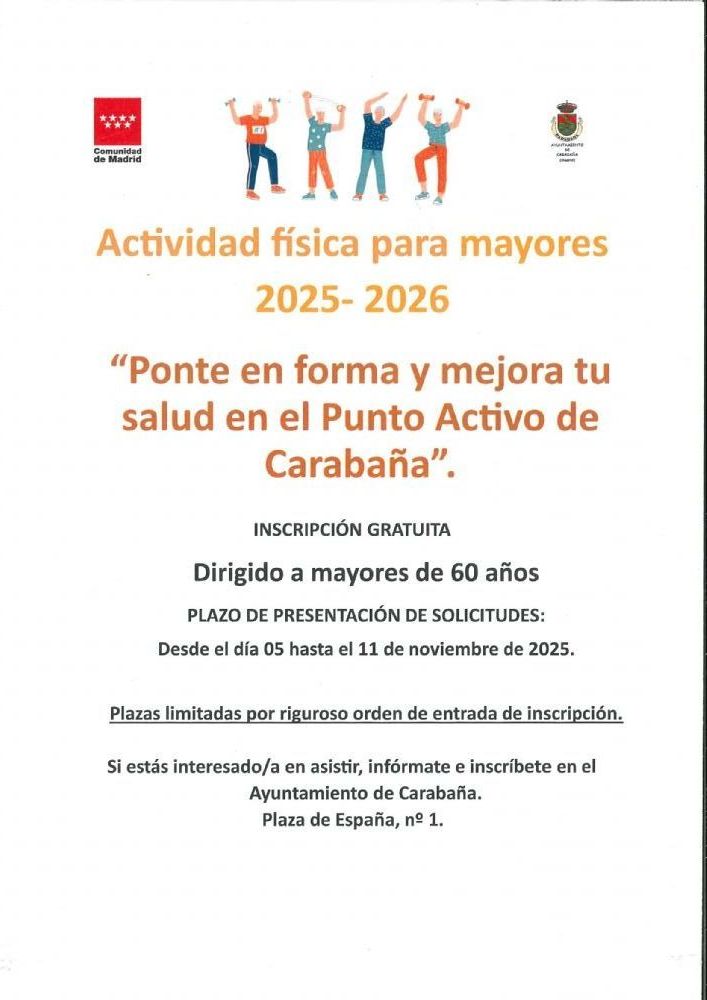 X EDICIÓN DEL PROGRAMA DE COLABORACIÓN INSTITUCIONAL EN PROYECTOS DE ACTIVIDAD FÍSICA Y SALUD: "PONTE EN FORMA Y MEJORA TU SALUD EN EL PUNTO ACTIVO DE CARABAÑA"